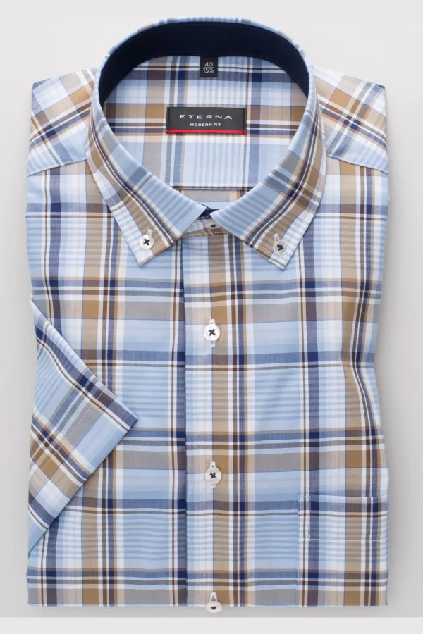 - Bij Overhemden.com kun je ETERNA Overhemd Korte mouw blauw/bruin kopen voor slechts €34,95