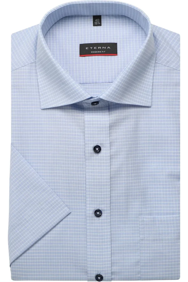 - Bij Overhemden.com kun je ETERNA Overhemd Korte mouw middenblauw kopen voor slechts €35,95