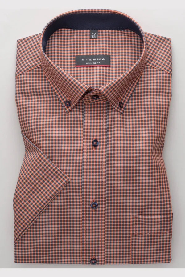 ETERNA Overhemd Korte mouw oranje/blauw Prijzen