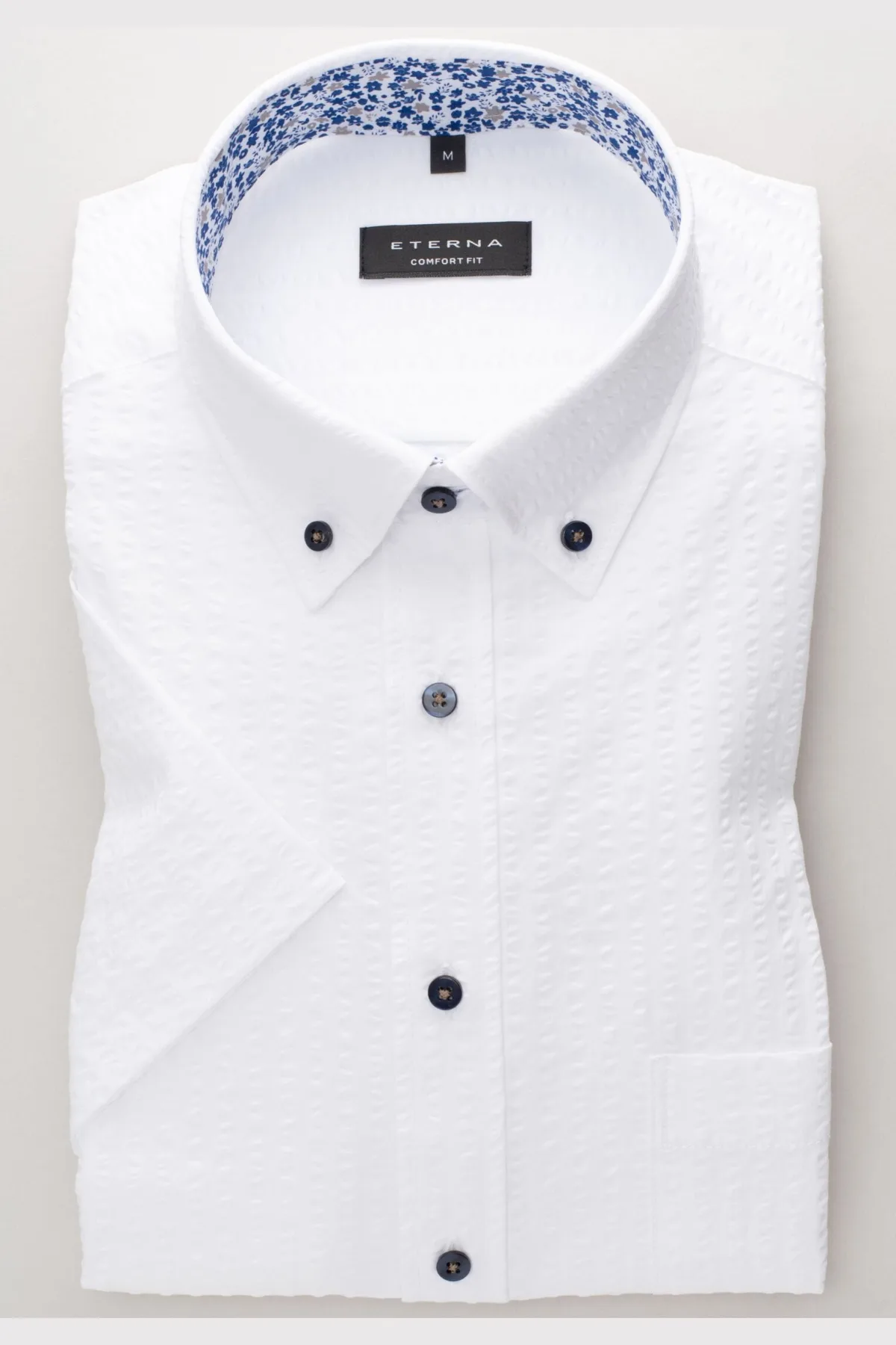 Korte mouw, 100% Katoen, Button-Downkraag Seersucker, Met borstzak, patch in kraag,