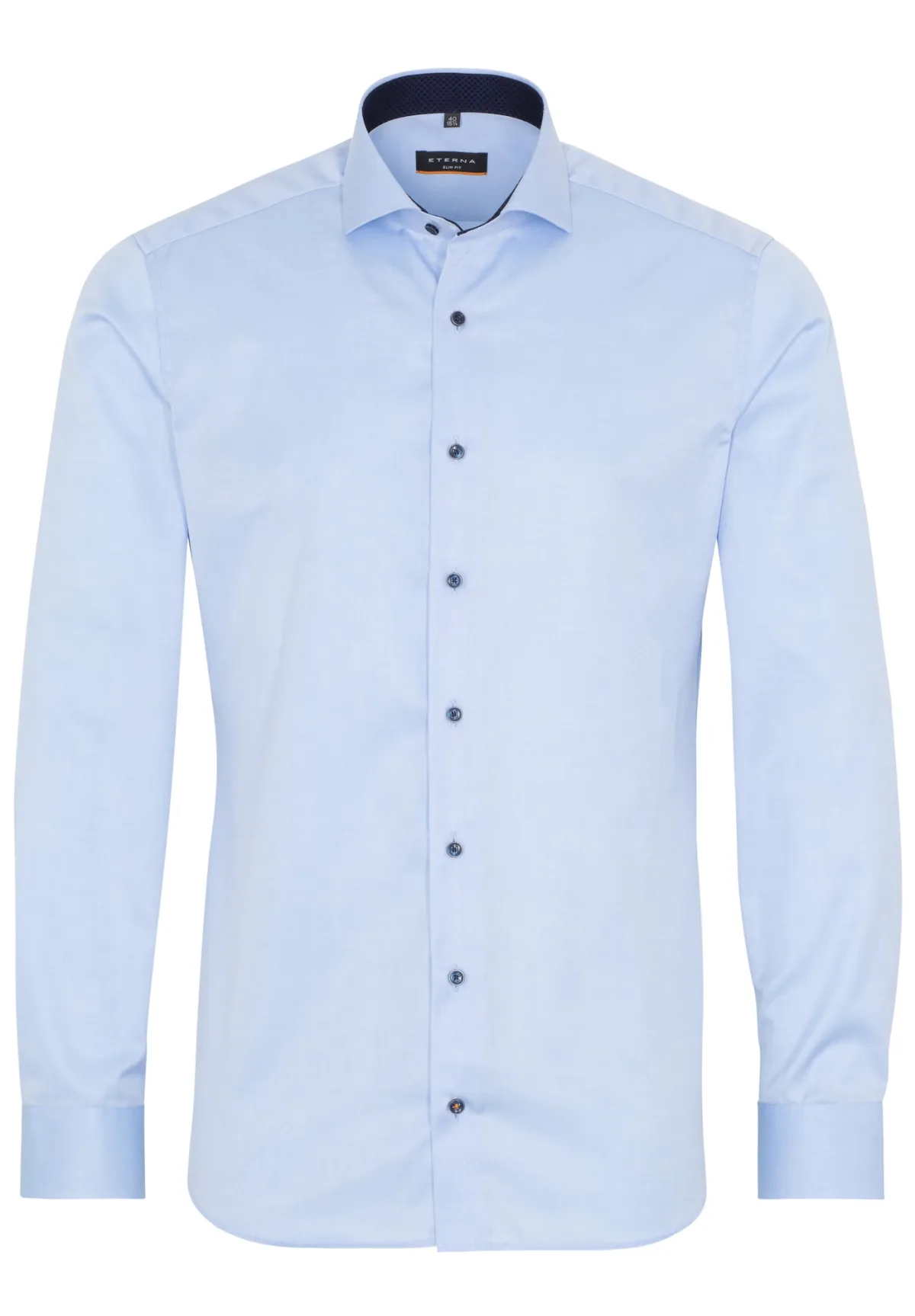 ETERNA slim fit overhemd niet doorschijnend twill lichtblauw contrast Strijkvrij...