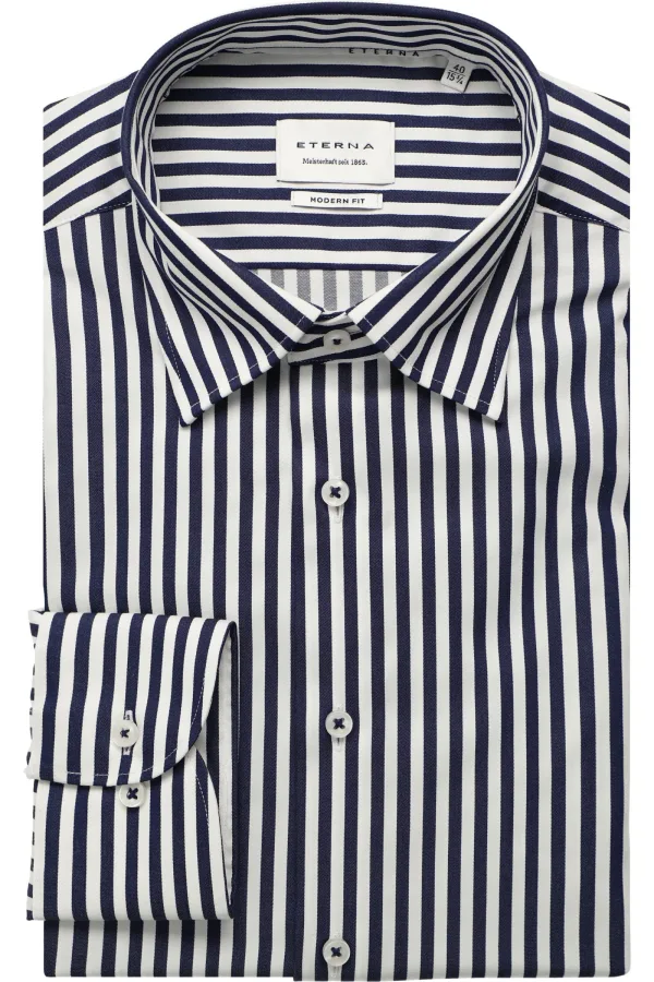 - Bij bol.com kun je ETERNA modern fit overhemd - satijnbinding - donkerblauw gestreept - Strijkvrij - Boord kopen voor slechts €63,99