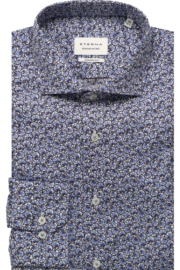 ETERNA Overhemd middenblauw, Bedrukt Prijzen