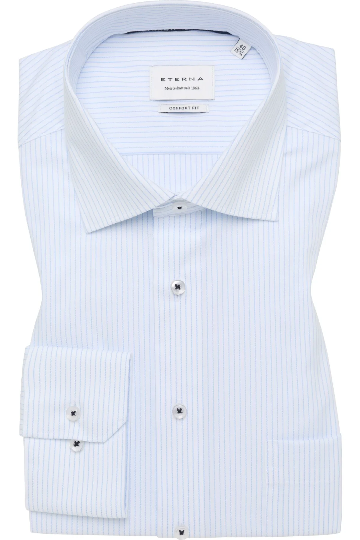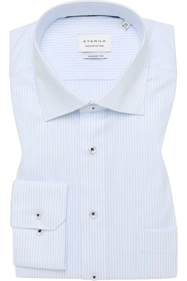 - Bij Overhemden.com kun je ETERNA Overhemd middenblauw, Gestreept kopen voor slechts €69,99