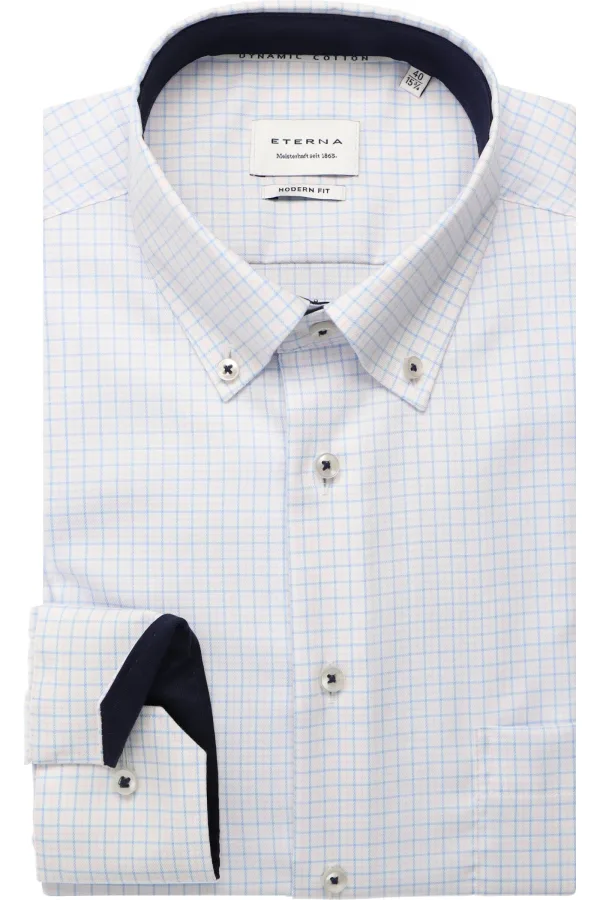 - De laagste prijs van ETERNA modern fit overhemd twill wit met lichtblauw en roze geruit Strijkvrij Boord werd gevonden op 24 april 2026 15:04.