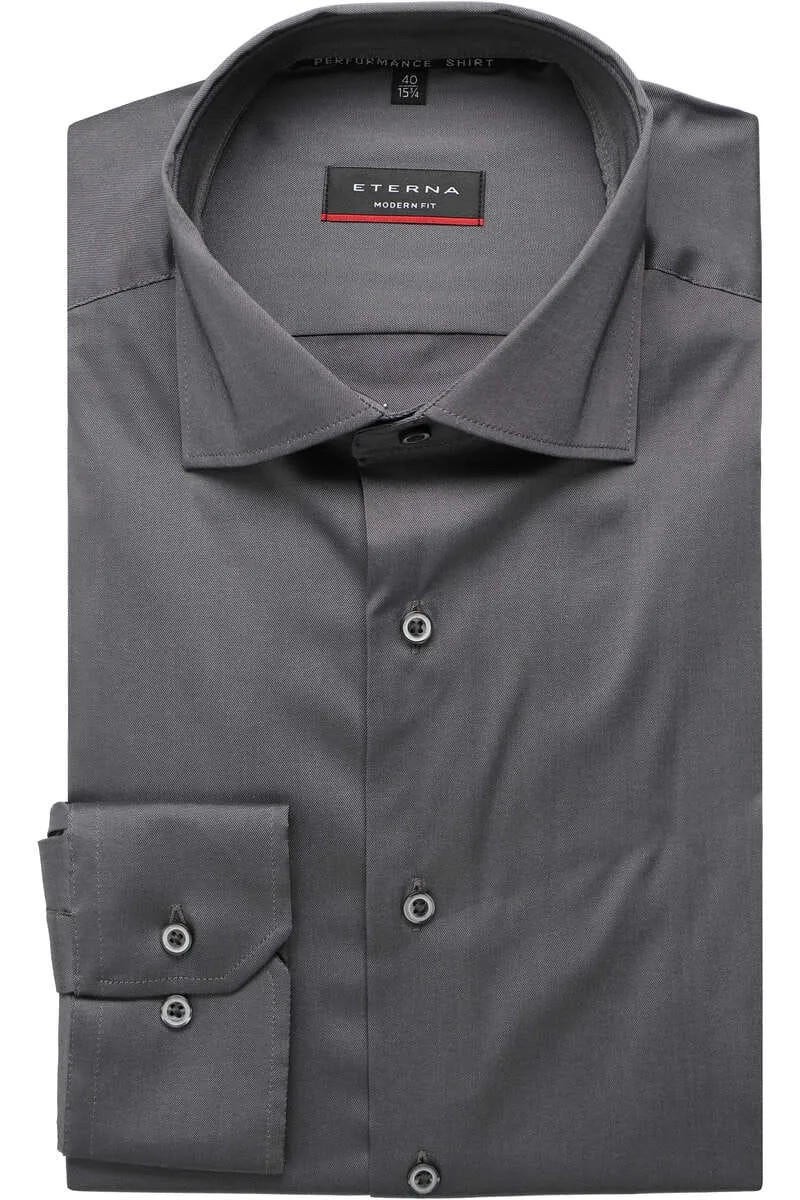 ETERNA Performance Modern Fit Overhemd grijs, Effen
