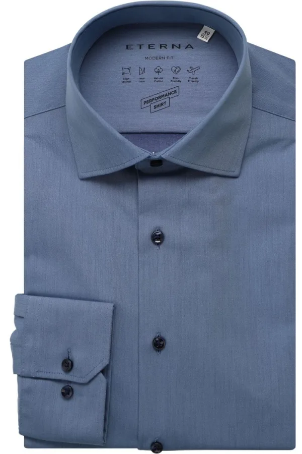 ETERNA Performance Overhemd denim, Effen