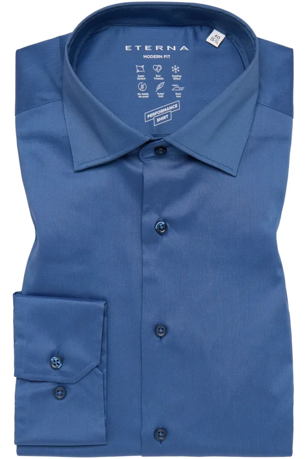 - Bij bol.com kun je ETERNA modern fit overhemd superstretch lyocell heren overhemd midden blauw Strijkvriendelijk Boord kopen voor slechts €69,95 , dat is 7% goedkoper dan bij Overhemden.com (€74,95).