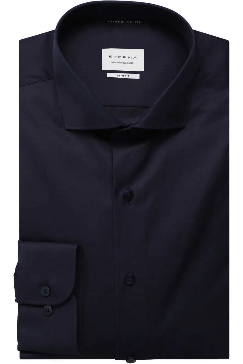 ETERNA slim fit overhemd twill donkerblauw Strijkvrij Boord