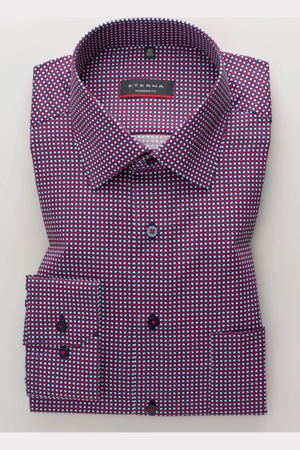 ETERNA Upcycling Overhemd Extra kort (ML5) rood/navy