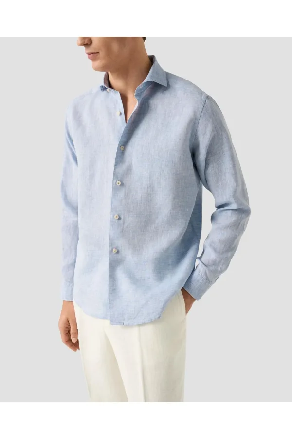 ETON Linnen Overhemd lichtblauw, Effen Prijzen
