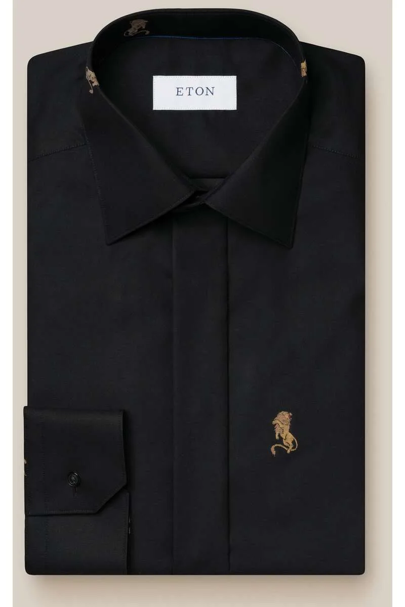 ETON Overhemd zwart, Borduurpatroon