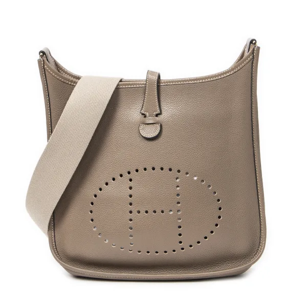 Hermès Tassen Evelyne I PM Schoudertas in de Etoupe Kalfsleer in de Goud hardware. Het product is in In Perfecte Staat (AA). Afmetingen: 29x30x8 cm Inclusief accessoires: Strap; Dustbag Opmerkingen over de binnenkant: Lichte vlekken op de voering BrandCo Paris vindt zeldzame artikelen in de beste staat voor ongelooflijke prijzen. Het is de moeite waard om geduldig te zijn! Koop met vertrouwen: alle artikelen van BrandCo Paris worden zorgvuldig geselecteerd en geverifieerd door ons team van experts. Alle artikelen worden geleverd met een certificaat van echtheid en verpakt door BrandCo Paris. Classificatietabel voor de conditie van het artikel: N (als nieuw) AA (perfecte staat) A (uitstekende staat) AB (zeer goede staat) B (goede/redelijke staat)
