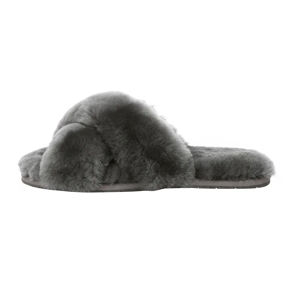 Geniet van de allure van comfort en weelde met de Dove crossover-slippers. Omarm de moeiteloze draagbaarheid en charmante uitstraling, omdat het comfort en stijl naadloos combineert. Met een gevarieerde selectie kleuren kunt u de perfecte tint selecteren die past bij uw unieke modevoorkeuren. Beschrijving: Bovenwerk van schapenvacht Voering van schapenvachtwol Binnenzool van schapenvachtwol Rubberen zool Technologieën: Waterbestendig bovenwerk Lichtgewicht buitenzool