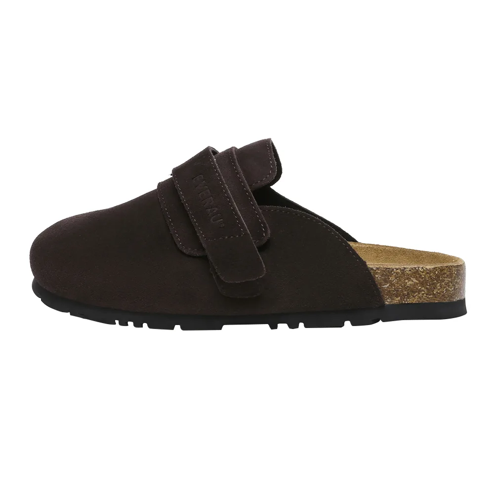 De Norfolk klompen, vervaardigd van suède, bogen op een verfijnd ontwerp met een riem en voetbed dat zich vormt naar de vorm van de voet, aangevuld met een pluche schapenvacht voering voor extra comfort.