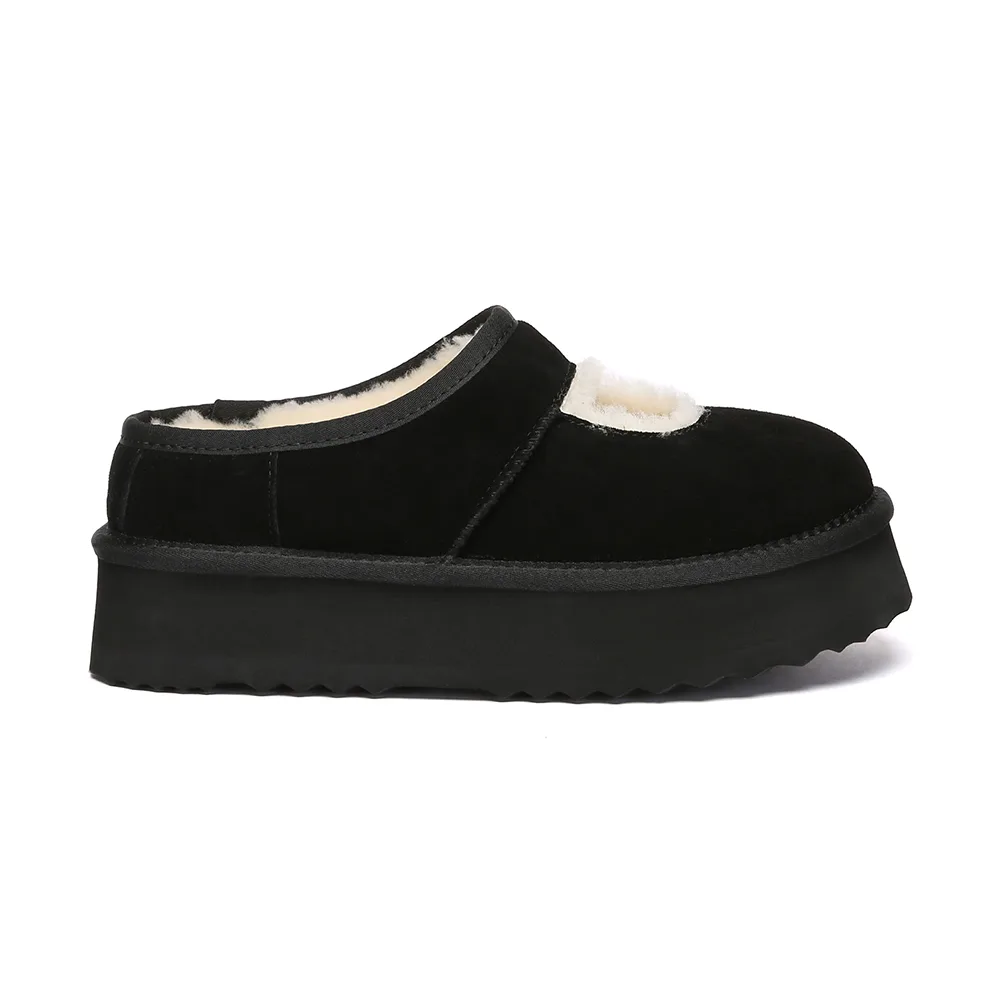 De iconische Mary Jane opnieuw uitgevonden: de EVERAU Platform Pantoffels combineren tijdloze charme met modern comfort. Met een zachte suède buitenkant, warme schapenvacht binnenkant en een lichte platformzool van 4 cm – ideaal voor loungen of snelle uitstapjes.Productdetails: Bovenwerk: Rundleer suède Voering: Schapenvachtwol Binnenzool: Schapenvachtwol Zool: EVA-schuim Platformhoogte: 4 cm