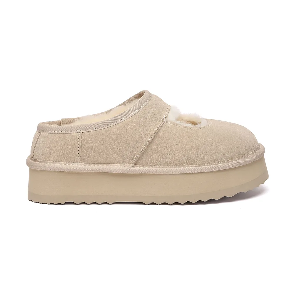 De iconische Mary Jane opnieuw uitgevonden: de EVERAU Platform Pantoffels combineren tijdloze charme met modern comfort. Met een zachte suède buitenkant, warme schapenvacht binnenkant en een lichte platformzool van 4 cm – ideaal voor loungen of snelle uitstapjes.Productdetails: Bovenwerk: Rundleer suède Voering: Schapenvachtwol Binnenzool: Schapenvachtwol Zool: EVA-schuim Platformhoogte: 4 cm