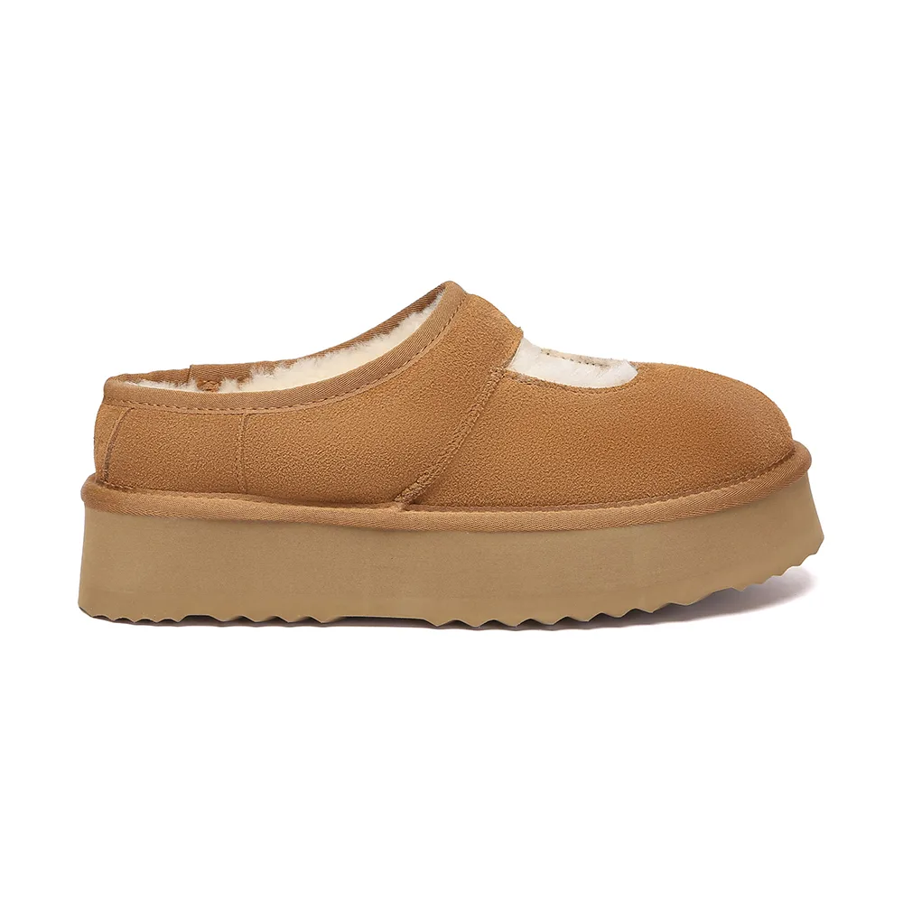 De iconische Mary Jane opnieuw uitgevonden: de EVERAU Platform Pantoffels combineren tijdloze charme met modern comfort. Met een zachte suède buitenkant, warme schapenvacht binnenkant en een lichte platformzool van 4 cm – ideaal voor loungen of snelle uitstapjes.Productdetails: Bovenwerk: Rundleer suède Voering: Schapenvachtwol Binnenzool: Schapenvachtwol Zool: EVA-schuim Platformhoogte: 4 cm