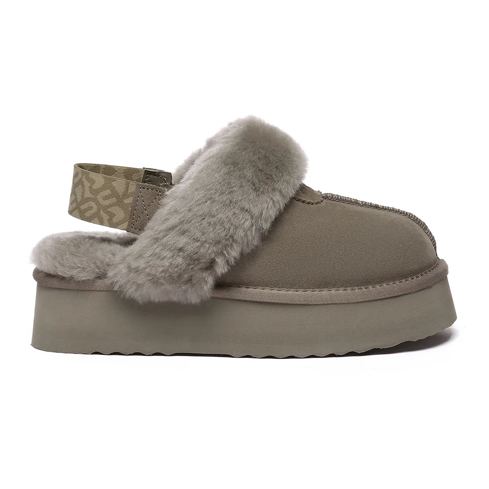 Met maximale gezelligheid en een beetje lift. Ervaar de modieuze aantrekkingskracht van de Wagtail-slippers. Het bovenwerk van rundsuède is behandeld met een waterafstotende coating. De toegevoegde functie van een afneembare riem betekent dat je ze met of zonder kunt dragen, wat geweldig is voor extra flexibiliteit bij het combineren van je outfits. Specificatie: Suède bovenwerk Warme schapenvacht Wollen voering Zachte schapenvachtwollen binnenzool EVA-zool Technologieën: Water & Vlekbestendig bovenwerk Slipvaste buitenzool