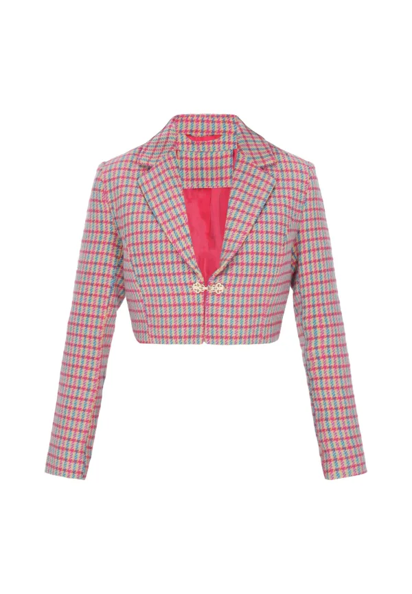 Design: Revers kraag; Type sluiting: Haakjes; Voering: Licht gevoerd; Materiaal: Wol; Motief: Hanenpootmotief; Extra's: All-over patroon; Pasvorm: Normale pasvorm; Armlengte: Lange mouw; Lengte: Korte pasvorm