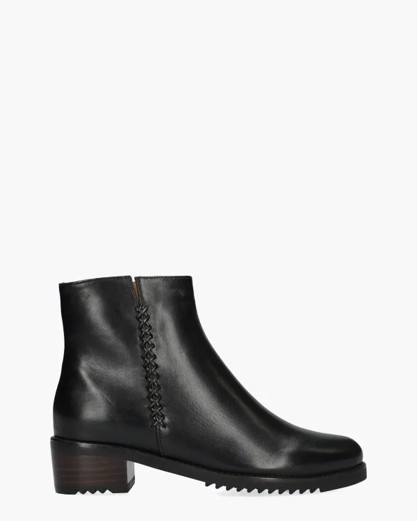 Een basic zwarte boot, maar dan met extra finesse. Het gladde leer en het opvallende stikwerk opzij maken deze Everybody 11653 damesboots tot een elegante keuze voor elke dag. De schacht is ongeveer 13 cm hoog, terwijl je voeten warm blijven dankzij de zachte fleece voering. Met het vaste voetbed en de stevige rubberen zool en 4 cm hak met