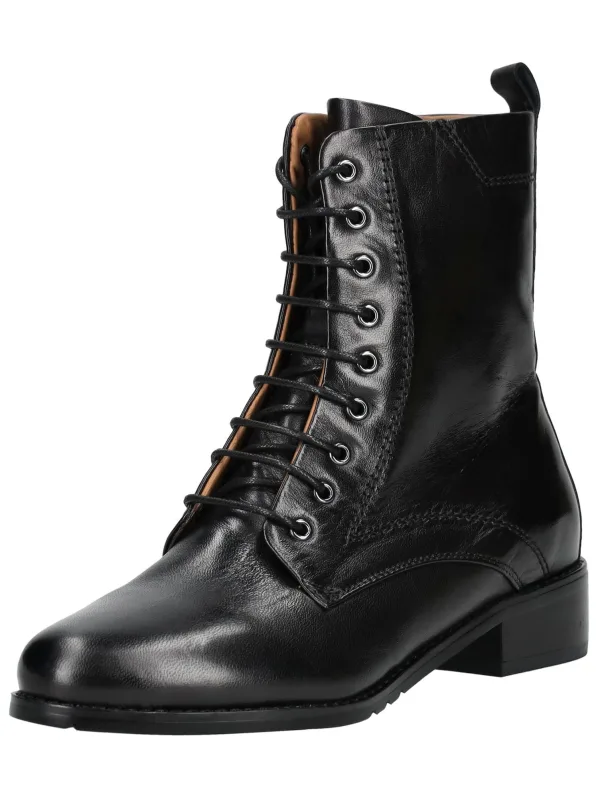 Design: Profielzolen, Vetering met 9 gaten; Type sluiting: Snoersluiting; Type hak: Blokhak; Materiaal: Leer; Motief: Effen; Materiaal: Glad leer; Schoenneus: Ronde neus; Extra's: Flexibele zool; Voering: Warm gevoerd; Hakhoogte: Middelhoge hak (3-7 cm)