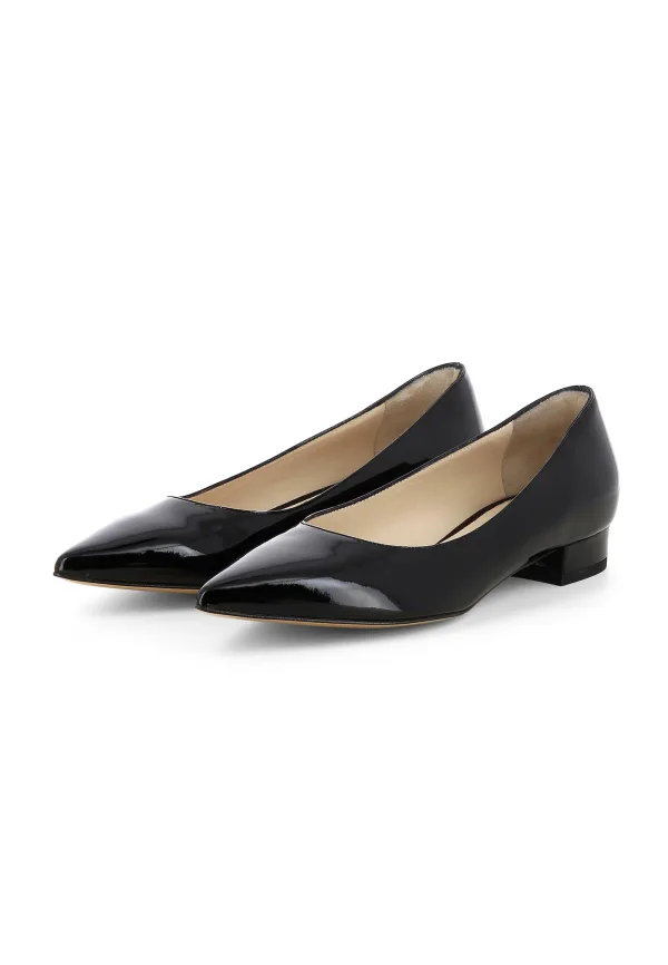 Design: Versterkte hak; Type sluiting: Slip; Materiaal: Leer; Motief: Effen; Materiaal: Lak; Schoenneus: Spitse neus; Extra's: Glanzend; Hakhoogte: Platte hak (0-3 cm)