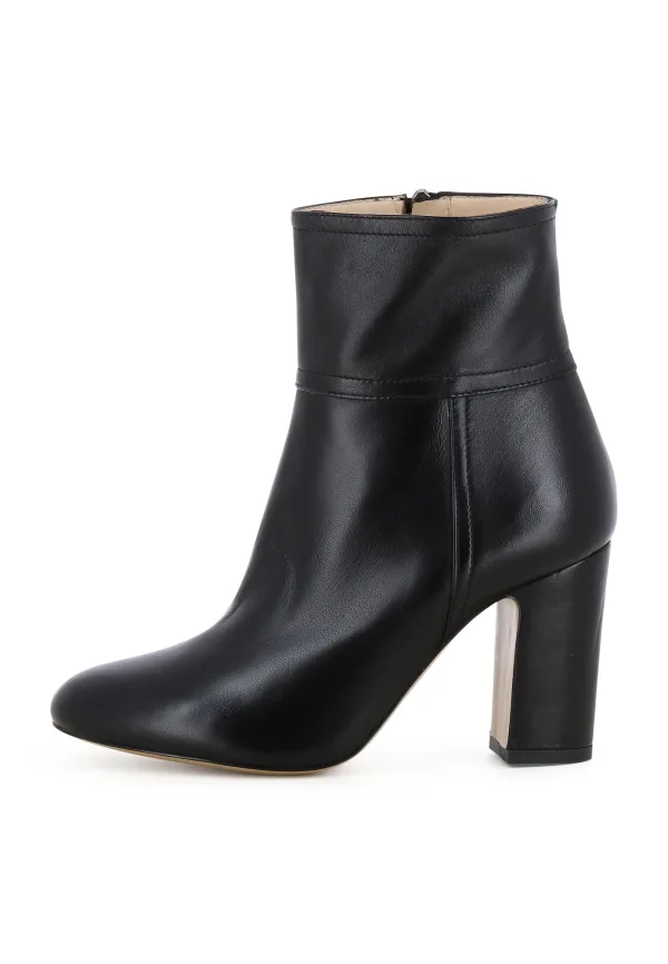 Design: Ritszakken aan de zijkant; Type sluiting: Ritssluiting; Type hak: Blokhak; Materiaal: Leer; Motief: Effen; Materiaal: Glad leer; Schoenneus: Ronde neus; Extra's: Op staal naden; Hakhoogte: Hoge hak (7-10 cm)