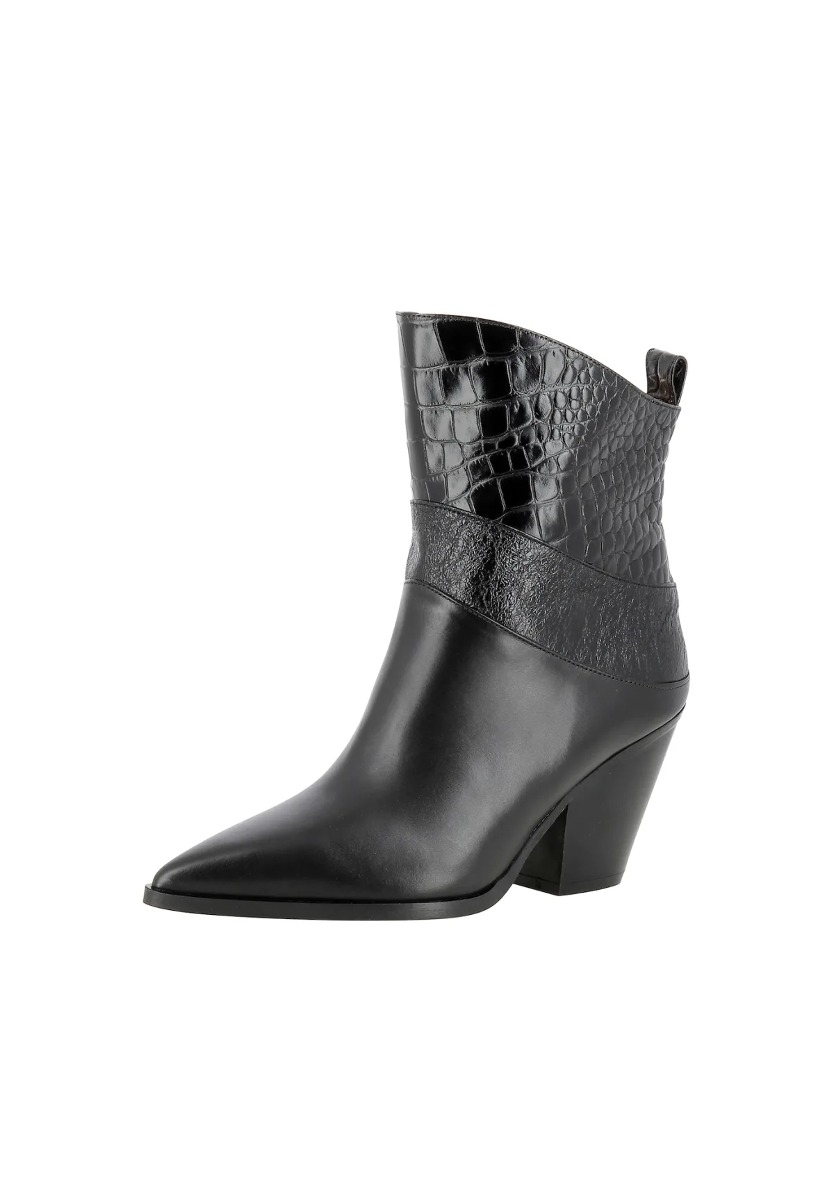 Design: Pumps met enkelbandje, Elastische inserts; Type hak: Blokhak; Materiaal: Leer; Motief: Effen; Materiaal: Glad leer; Schoenneus: Spitse neus; Extra's: Flexibele zool, Reptile look, Antislip; Hakhoogte: Hoge hak (7-10 cm)