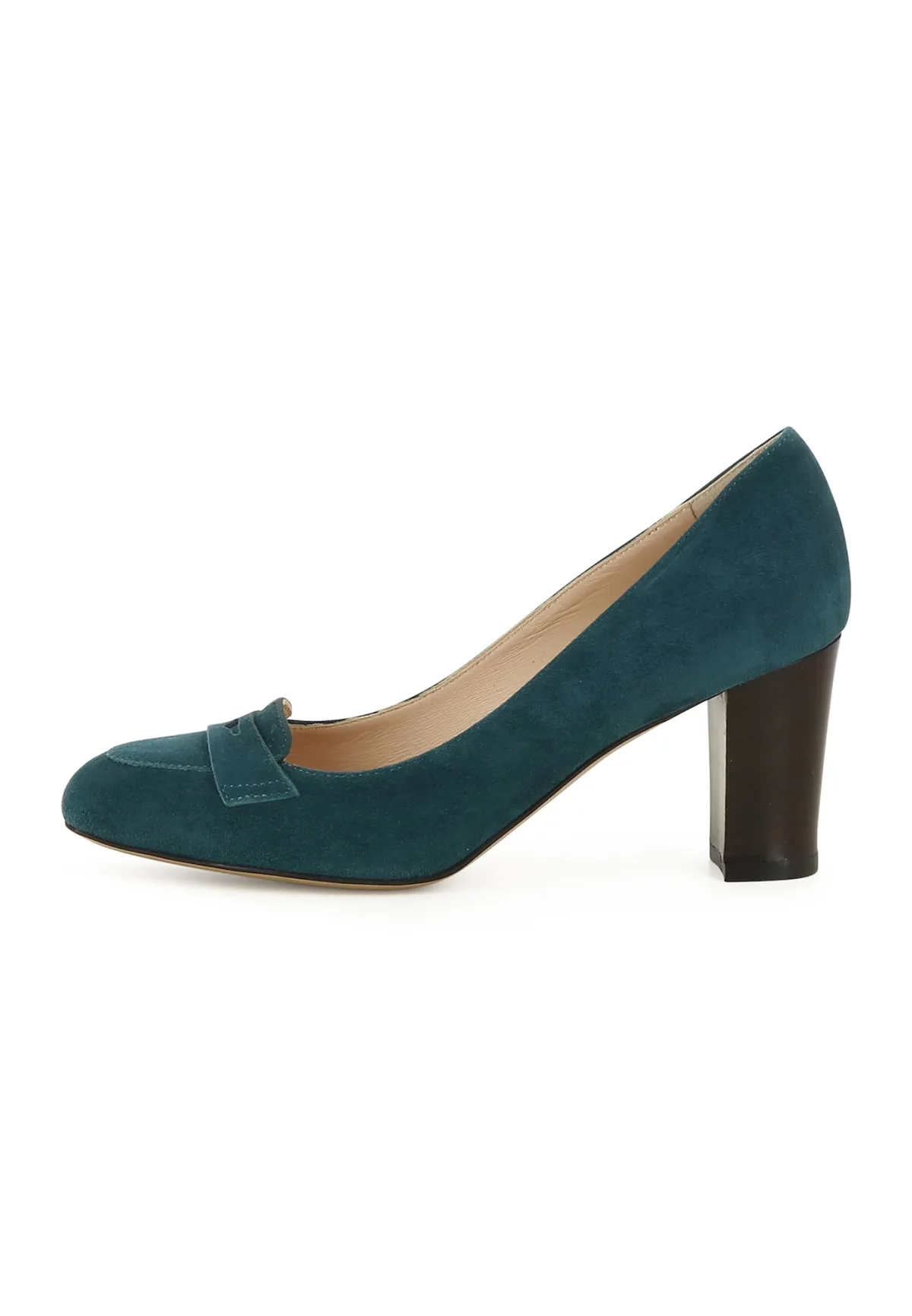 Type sluiting: Slip; Type hak: Blokhak; Materiaal: Leer; Motief: Effen; Materiaal: Suède; Schoenneus: Ronde neus; Hakhoogte: Hoge hak (7-10 cm)