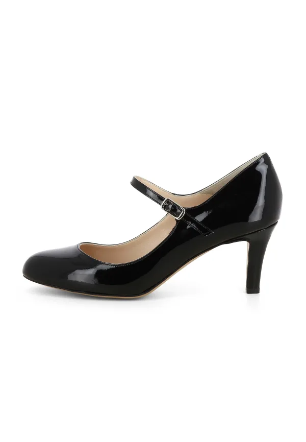 Type sluiting: Riemsluiting; Type hak: Stiletto; Materiaal: Leer; Motief: Effen; Materiaal: Glad leer, Lak; Schoenneus: Ronde neus; Hakhoogte: Hoge hak (7-10 cm)