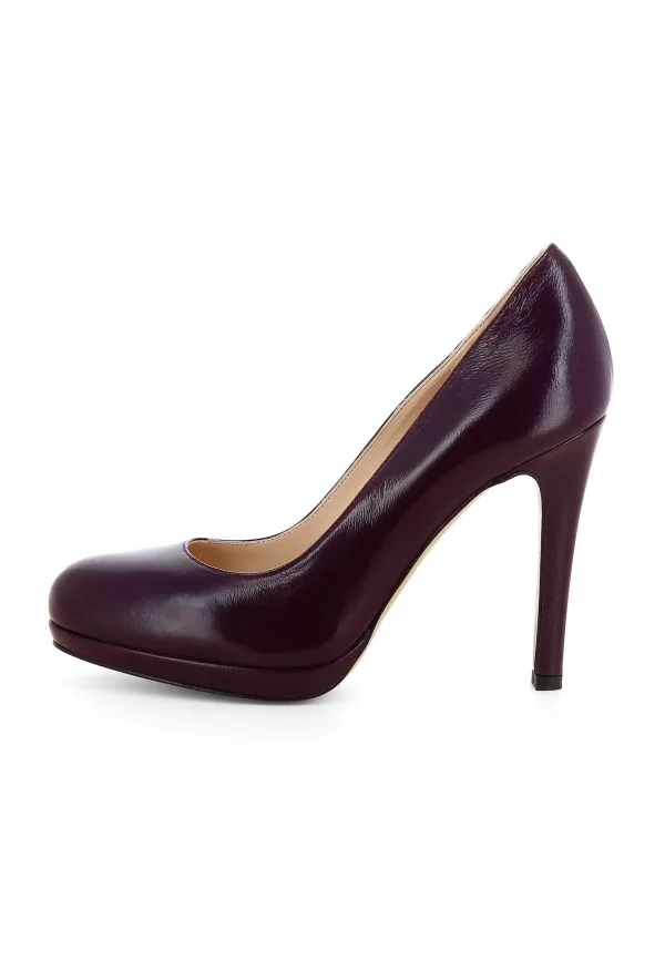 Design: Pumps met enkelbandje; Type sluiting: Slip; Type hak: Stiletto; Materiaal: Leer; Motief: Effen; Plateau: Met plateau; Materiaal: Glad leer, Lak; Schoenneus: Ronde neus; Extra's: Gladde stof; Hakhoogte: Hoge hak (7-10 cm)