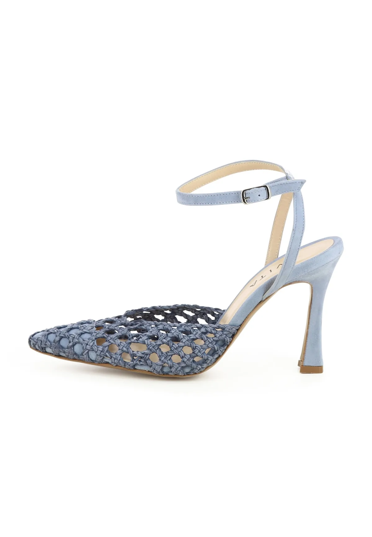 Type sluiting: Riemsluiting; Type hak: Trechterhak; Materiaal: Leer; Motief: Effen; Materiaal: Stro materiaal; Schoenneus: Spitse neus; Hakhoogte: Hoge hak (7-10 cm)