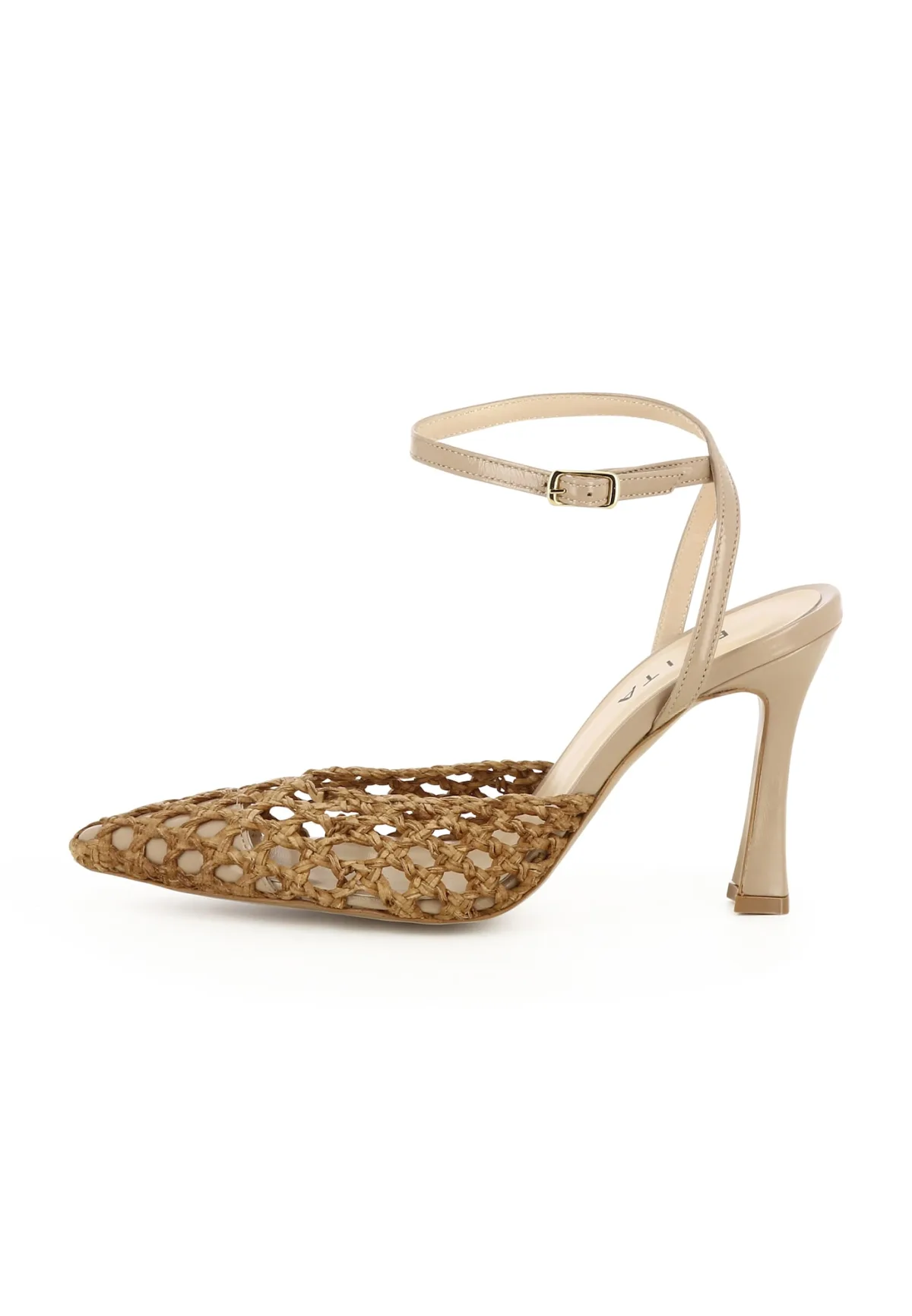 Type sluiting: Riemsluiting; Type hak: Trechterhak; Materiaal: Leer; Motief: Effen; Materiaal: Stro materiaal; Schoenneus: Spitse neus; Hakhoogte: Hoge hak (7-10 cm)