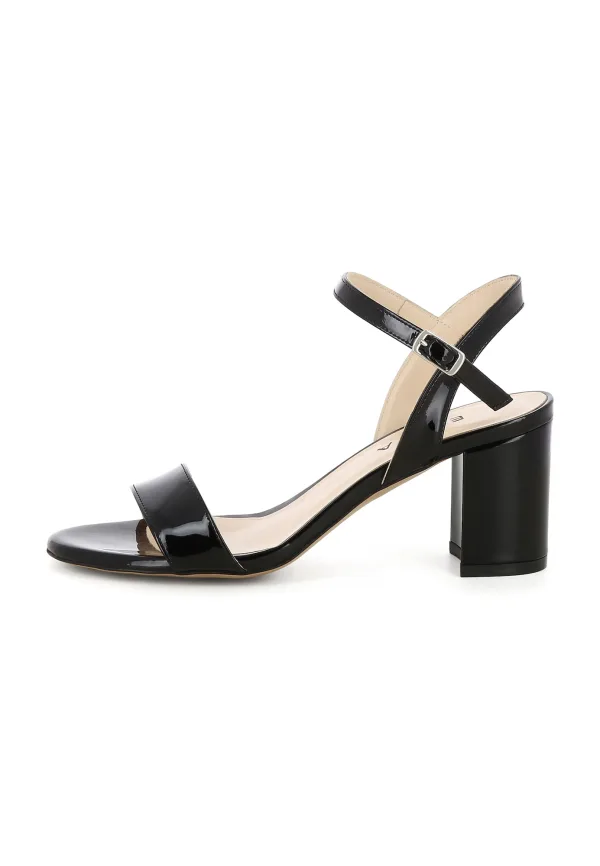 Type sluiting: Riemsluiting; Type hak: Blokhak; Materiaal: Leer; Motief: Effen; Materiaal: Glad leer, Lak; Schoenneus: Open toe; Hakhoogte: Middelhoge hak (3-7 cm)