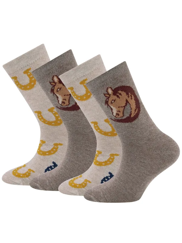 Specificaties: EWERS Sokken ‘Pferd/Hufeisen’ blauw / bruin / grijs
