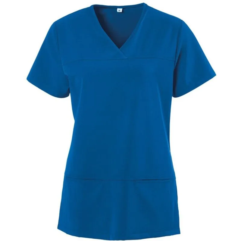 73% Polyester, 22% Viscose, 5% Elastaan. Ontwerp: Eenvoudig. Zakken: 2 Voorzakken. Mouwtype: Korte mouwen. Hals: V Hals. Rugstuk, voorstuk, zijsplitjes. Geschikt voor: Slank. 180gsm. Duurzaamheid: Oeko-Tex Standaard 100 Gecertificeerd. XS: 37,5 in. S: 39 in. M: 41 in. L: 42,5 in. XL: 44 in. XXL: 45,5 in. 3XL: 47 in. 4XL: 48,5 in. 5XL: 50 in.