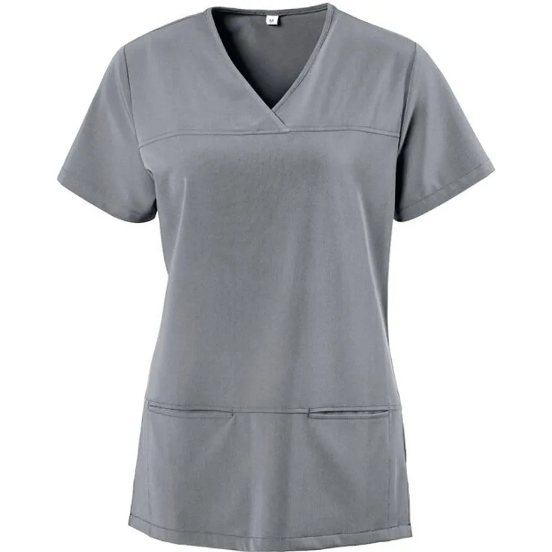 73% Polyester, 22% Viscose, 5% Elastaan. Ontwerp: Eenvoudig. Zakken: 2 Voorzakken. Mouwtype: Korte mouwen. Hals: V Hals. Rugstuk, voorstuk, zijsplitjes. Geschikt voor: Slank. 180gsm. Duurzaamheid: Oeko-Tex Standaard 100 Gecertificeerd. XS: 37,5 in. S: 39 in. M: 41 in. L: 42,5 in. XL: 44 in. XXL: 45,5 in. 3XL: 47 in. 4XL: 48,5 in. 5XL: 50 in.