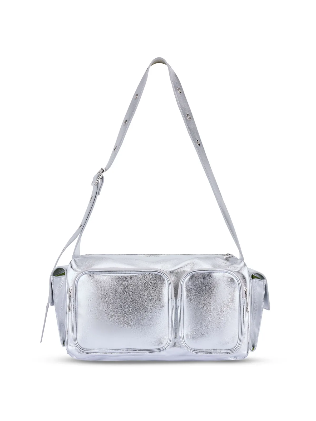 Design: Vak voor mobiele telefoon, Ritsvak binnen, Verstelbare lengte, Contrast voering, Opgezette zakken, Opzet-/flapzak, Zijvakken; Type sluiting: Ritssluiting; Materiaal: Imitatieleder; Motief: Effen; Materiaal: Imitatieleer; Extra's: Op staal naden, Label preegdruk, Waterafstotend, Metalen oogjes, Metallic look, PETA-Approved Vegan; Maat: Klein; Hengsellengte: Korte schouderriemen