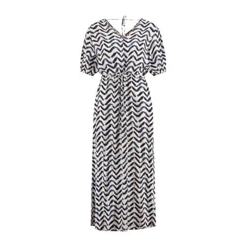 Deze jurk van Expresso heeft korte mouwen en een V-hals. Dit model is gemaakt van viscose. De jurk is geweven en heeft een lange lengte met een midi-model en een A-lijn pasvorm.