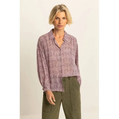 Geef je outfit een stijlvolle upgrade met deze Expresso donkerrode dames blouse. De blouse heeft een rijke donkerrode kleur met een all over print en valt op door de elegante ballonmouwen met driekwart lengte. De klassieke kraag en doorknoopsluiting aan de voorkant zorgen voor een tijdloze uitstraling die je zowel casual als gekleed kunt dragen.Verfijnde details voor elke dag Donkerrode kleur met all over print voor een verzorgd geheel Klassieke kraag en knoopsluiting voor een nette, vrouwelijke look Ballonmouwen met driekwart lengte geven extra volume aan het silhouet Middellange lengte die mooi valt over een broek of rok Gemaakt van 100% viscose, een luchtige geweven stof met zachte touch Afkomstig uit de Boutique collectie, passend bij het lenteseizoen Zonder borst- of steekzakken voor een rustige, strakke voorkantMakkelijk combineren in jouw garderobeDeze blouse draag je eenvoudig op een donkere jeans voor een alledaagse look of op een nette pantalon voor een meer geklede combinatie. De middel-lange pasvorm sluit mooi aan op hoge tailles en valt ook prettig over een rechte rok.Expresso: aandacht voor pasvorm en detailExpresso staat bekend om mode die is ontworpen met oog voor pasvorm en detail. De collecties volgen de trends, maar blijven goed draagbaar in het dagelijks leven. Met deze blouse haal je een doordacht ontworpen item in huis dat lang in je kast meegaat.Een elegante keuze voor dagen waarop je je gemakkelijk én verzorgd wilt kleden.
