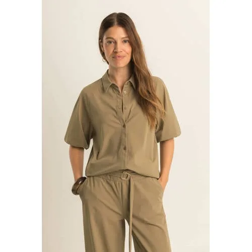Geef je outfit een moderne, vrouwelijke twist met deze grijsgroene dames blouse met pofmouwen van Expresso. De blouse heeft een klassieke kraag en half lange mouwen, waardoor hij zowel zakelijk als casual goed te dragen is. De effen grijsgroene kleur is subtiel en zorgt voor een rustige basis in je garderobe.Stijlvolle details en comfortabel materiaal Gemaakt van 80% polyamide en 20% elastaan voor een soepele stretch en een zachte touch op de huid Pofmouwen met half lange lengte geven een moderne, vrouwelijke vorm aan je silhouet Klassieke kraag en knoopsluiting aan de voorzijde voor een tijdloze uitstraling Effen grijsgroene kleur die makkelijk te combineren is met lichte en donkere onderstukken Gebreide structuur zorgt voor een geraffineerde look met net wat extra diepte Geen zakken voor een nette, gestroomlijnde voorkantMakkelijk te stylen door het seizoen heenDeze blouse combineer je met een donkere jeans of een nette pantalon voor naar je werk. In het voorjaar draag je hem met een lichte rok en sandalen. Door de half lange mouwen is de blouse geschikt voor dagen waarop je net wat meer bedekking wilt, zonder dat het te warm wordt.Expresso: eigentijdse stijl met aandacht voor detailExpresso staat bekend om doordachte damesmode met aandacht voor pasvorm en details. De collecties sluiten aan op het dagelijks leven, met kleding die je makkelijk combineert en die is afgestemd op dagelijks dragen.Een veelzijdige blouse die je garderobe op een rustige, stijlvolle manier compleet maakt.
