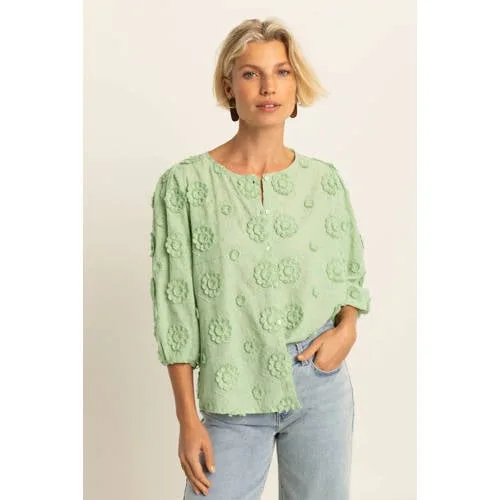 Fris, licht en vrouwelijk, deze lichtgroene dames blouse van Expresso is een subtiele blikvanger voor het voorjaar. De blouse heeft een ronde hals en driekwart mouwen en valt soepel langs het lichaam. Door de effen kleur komt de subtiele broderie duidelijk naar voren, waardoor het ontwerp een verfijnde uitstraling krijgt. De knoopsluiting aan de voorkant geeft je de keuze om de hals wat meer open te dragen of juist hoger gesloten.Verfijnde details voor elke dag Lichtgroene kleur die goed past bij het voorjaar Driekwart rechte mouwen voor een luchtig en comfortabel gevoel Ronde hals die zacht langs de halslijn valt Knoopsluiting aan de voorkant voor flexibel stylen Broderie details voor een verzorgde en vrouwelijke uitstraling Effen ontwerp, goed te combineren met diverse onderstukken Uit de Boutique collectie, met aandacht voor zorgvuldig uitgewerkte detailsMakkelijk te stylen in jouw garderobeDeze blouse is een praktische basis voor zowel werk als vrije tijd. Combineer met een nette pantalon en loafers voor een verzorgde werkdag, of draag de blouse met een jeans en sneakers voor een casual outfit. De lichtgroene tint zorgt voor een frisse noot in je garderobe en laat zich goed combineren met neutrale kleuren als wit, beige en denim.Expresso: aandacht voor pasvorm en detailExpresso staat voor mode die eigentijds en doordacht is, met veel aandacht voor pasvorm, details en draagbaarheid. De collecties worden ontworpen om je garderobe overzichtelijk en stijlvol te houden, met items die je seizoen na seizoen kunt blijven dragen.Een blouse die je garderobe op een subtiele manier opfrist.