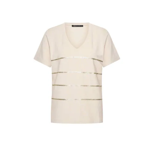 Deze dames top van Expresso heeft een v-hals en korte mouwen. Gemaakt van katoen, perfect voor een comfortabele dag. De top is versierd met pailletten voor een stijlvolle uitstraling. Ideaal om jouw outfit compleet te maken.