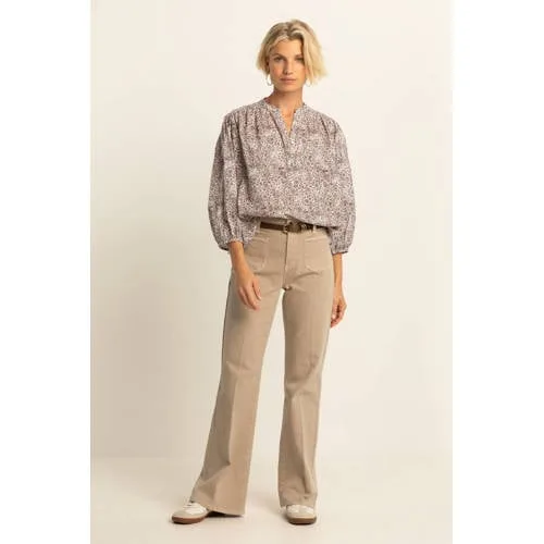Ga voor een moderne retrolook met deze beige Expresso corduroy flared jeans. De hoge taille en uitlopende pijpen zorgen voor een vrouwelijke belijning, terwijl de ribfluwelen stof je outfit direct meer karakter geeft. Dankzij de lange lengte combineer je deze broek moeiteloos met je favoriete laarsjes of sneakers, voor zowel casual als iets gekledere momenten.Details die je elke dag wilt dragen Flared model, vanaf de knie licht uitlopend voor een elegant silhouet Hoge taille die mooi aansluit rond de heupen en taille Gemaakt van 99% katoen en een procent elastaan voor een stevige stof met lichte stretch Ribfluweel in effen beige, makkelijk te combineren met uiteenlopende kleuren Rits- en knoopsluiting aan de voorkant voor een klassieke jeanslook Met riemlussen, zodat je eenvoudig een ceintuur toevoegt Voorzien van zakken voor en achter, praktisch voor kleine essentials Geweven kwaliteit voor een nette en verzorgde uitstralingFlared corduroy jeans voor uiteenlopende outfitsDeze flared jeans is een fijne basis voor verschillende stijlen. In combinatie met een eenvoudige T-shirt top oogt de broek relaxed, met een blouse of fijngebreide trui krijgt je outfit direct meer verfijning. De beige kleur maakt het eenvoudig om te spelen met zachte tinten of juist opvallende accenten.Expresso: aandacht voor pasvorm en detailExpresso staat bekend om eigentijdse collecties met een duidelijke focus op pasvorm. Elke broek wordt ontworpen met oog voor vrouwelijke lijnen en draagcomfort, zodat je je de hele dag prettig voelt in wat je draagt. De zorg voor materiaalkeuze en afwerking zorgt voor kledingstukken waar je vaak naar grijpt.Een stijlvolle basisjeans die je garderobe rustig, maar toch uitgesproken aanvult.
