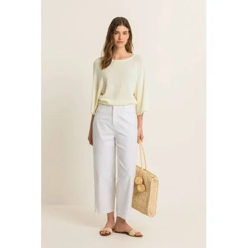 Op zoek naar een frisse basic voor je garderobe? Deze ecru straight leg jeans met high waist van Expresso is een veelzijdige broek die je het hele seizoen door kunt dragen. De rechte pijp en cropped lengte geven een moderne uitstraling, terwijl de hoge taille zorgt voor een mooi silhouet. De zachte denim in ecru is een rustige basis die makkelijk combineert met de rest van je kledingkast.Details die het verschil maken Gemaakt van 97.5% katoen / 2.5% elastane voor een stevige jeanslook met lichte stretch High waist taille die comfortabel aansluit rond je middel Straight leg model met cropped lengte voor een eigentijdse pasvorm Klassieke 5-pocket styling met handige zakken Rits- en knoopsluiting en riemlussen voor extra draagopties Effen ecru kleur, ideaal als zachte tegenhanger van donkere tops en jasjesCropped jeans voor elke dagDe cropped lengte komt mooi tot zijn recht met sneakers, loafers of sandalen. In het voorjaar combineer je de jeans makkelijk met een luchtige blouse, T-shirt of dunne knit. De rechte pijp oogt verzorgd en toch relaxed, waardoor deze broek geschikt is voor zowel vrije tijd als een casual werkdag.Expresso: doordachte modeExpresso staat bekend om vrouwelijke collecties met aandacht voor pasvorm en detail. De ontwerpen sluiten aan bij het dagelijks leven, met stukken die goed te combineren zijn en meerdere seizoenen mee kunnen. Met deze jeans haal je een betrouwbare basis uit de Boutique collectie in huis.Een rustige, stijlvolle jeans die veel ruimte laat voor je eigen stijl.