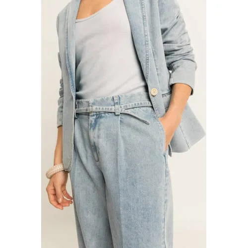 Geef je garderobe een frisse update met deze light blue wide leg jeans met hoge taille van Expresso. De lange pijpen vallen recht en wijd langs het been, wat zorgt voor een ontspannen silhouet dat toch mooi aansluit in de taille. De zachte blend van 60% katoen en 40% lyocell voelt soepel aan, waardoor deze jeans geschikt is voor lange dagen op kantoor of een ontspannen weekenddag.Details die het verschil maken High waist model dat mooi in de taille valt en je middel accentueert Wide leg pasvorm met lange pijpen voor een moderne, vrouwelijke look Gemaakt van 60% katoen en 40% lyocell voor een zachte, soepele touch Effen light blue denim kleur die licht en fris oogt Rits- en knoopsluiting aan de voorkant Zakken voor en achter, praktisch en klassiek vormgegeven Met riemlussen, zodat je eenvoudig je favoriete riem kunt toevoegen Geweven kwaliteit uit de Boutique collectie voor het lenteseizoenElke dag draagbaarDeze jeans is een fijne basis voor veel outfits. Combineer met een eenvoudige top en sneakers voor een casual look of kies een blouse en hakken als je net wat meer aangekleed voor de dag wilt komen.Over ExpressoExpresso staat bekend om eigentijdse damesmode met aandacht voor pasvorm en detail. De collecties worden ontworpen met een duidelijke focus op stijlvolle, draagbare items die je gemakkelijk met elkaar combineert. Zo stel je moeiteloos een garderobe samen waar je lang plezier van hebt.Een veelzijdige jeans die snel een favoriet wordt in je dagelijkse rotatie.