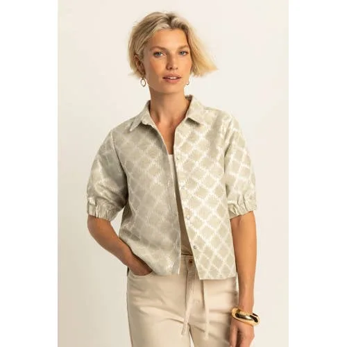 Breng frisse energie in je garderobe met dit lichtgroen dames jasje met pofmouwen van Expresso. De lichtgroene kleur met subtiele gouden accenten en lurex geeft een opvallende, maar toch rustige uitstraling. De middel-lange lengte en de klassieke kraag zorgen voor een nette, verzorgde look, terwijl de driekwart mouwen en pofmouwen het geheel een moderne twist geven. Dit jasje is geschikt voor lentedagen waarop je iets luchtigs wilt dragen dat er tegelijk gekleed uitziet.Verfijnde details voor elke dag Lichtgroen/goud met all over print voor een speels en verzorgd geheel Pofmouwen met driekwart lengte voor een luchtige uitstraling Klassieke kraag en middel-lange lengte voor een nette pasvorm Lurex in de stof voor een subtiele glans Zonder zakken voor een strak en gestroomlijnd silhouet Geschikt voor de lente, te dragen over een top, blouse of jurkLicht jasje voor het lenteseizoenDit jasje past goed over een basic T-shirt en een broek voor een casual dag, maar combineert ook makkelijk met een jurk voor een meer geklede gelegenheid. De lichte stof voelt soepel aan en maakt het een prettig laagje voor wisselvallige lentedagen.Expresso: stijl met aandacht voor detailExpresso staat bekend om collecties met doordachte details en eigentijdse pasvormen. Elk ontwerp wordt gemaakt met oog voor vorm, kleur en draagbaarheid, zodat je een garderobe opbouwt met kledingstukken die je makkelijk combineert en waarmee je er verzorgd uitziet.Een licht jasje dat je lentelooks direct een frisse en moderne uitstraling geeft.