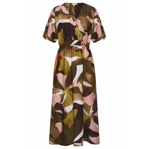 Deze Expresso midi jurk met overslagkraag is een stijlvolle keuze voor dagen waarop je er verzorgd uit wilt zien zonder lang voor de kast te staan. De all-over print in multi kleur geeft een levendige uitstraling, terwijl de midi lengte en middelhoge taille een elegante lengte creëren. De soepele stof met 80% viscose en 20% polyamide valt mooi langs het lichaam en beweegt licht met je mee.Verfijnde details en comfortabele pasvorm Midi jurklengte die rond de knie of net eronder valt, ideaal voor zowel werk als een etentje Overslagkraag die een vrouwelijke V-hals vormt en het bovenlijf mooi uit laat komen Driekwart mouwen met rechte mouwinzet voor een luchtig maar bedekkend effect All-over print in multi kleur voor een levendig en modern geheel Plooien zorgen voor extra ruimte en een soepel vallende rok Geen sluiting, je trekt de jurk eenvoudig aan en uit Gemaakt van 80% viscose en 20% polyamide voor een zachte touch en prettig draaggevoel Geen zakken zodat de jurk zijn slanke silhouet behoudtVoor frisse lentedagen en daarnaDeze jurk komt uit de lente collectie en is goed te dragen vanaf de eerste zonnige dagen. Combineer met lichte enkellaarsjes of sneakers voor overdag en met een elegante hak voor een avond uit. Een dunne blazer of vest erover maakt de look compleet op frissere momenten.Expresso: modern en doordacht designExpresso staat bekend om mode die is afgestemd op het dagelijks leven, met aandacht voor pasvorm en mooie stoffen. De ontwerpen zijn eigentijds en doordacht, zodat je items seizoen na seizoen met plezier uit de kast pakt.Een veelzijdige jurk waarmee je in één keer klaar bent voor allerlei momenten op de dag.