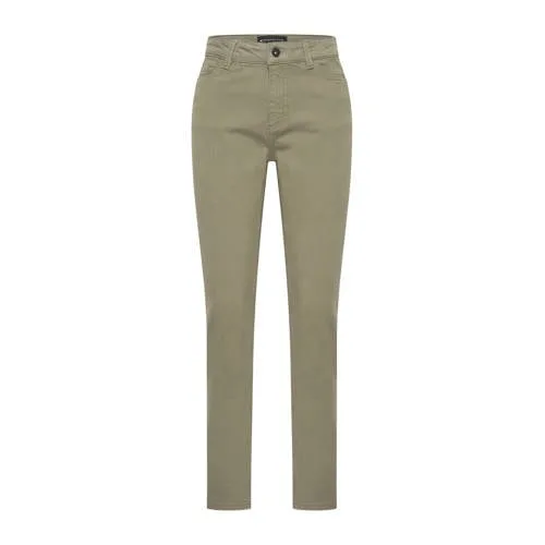 Deze Expresso damesjeans in kaki heeft een regular waist en is gemaakt van denim. Deze slim fit jeans heeft een rits- en knoopsluiting en biedt met de 5-pocket stijl en riemlussen praktische details.